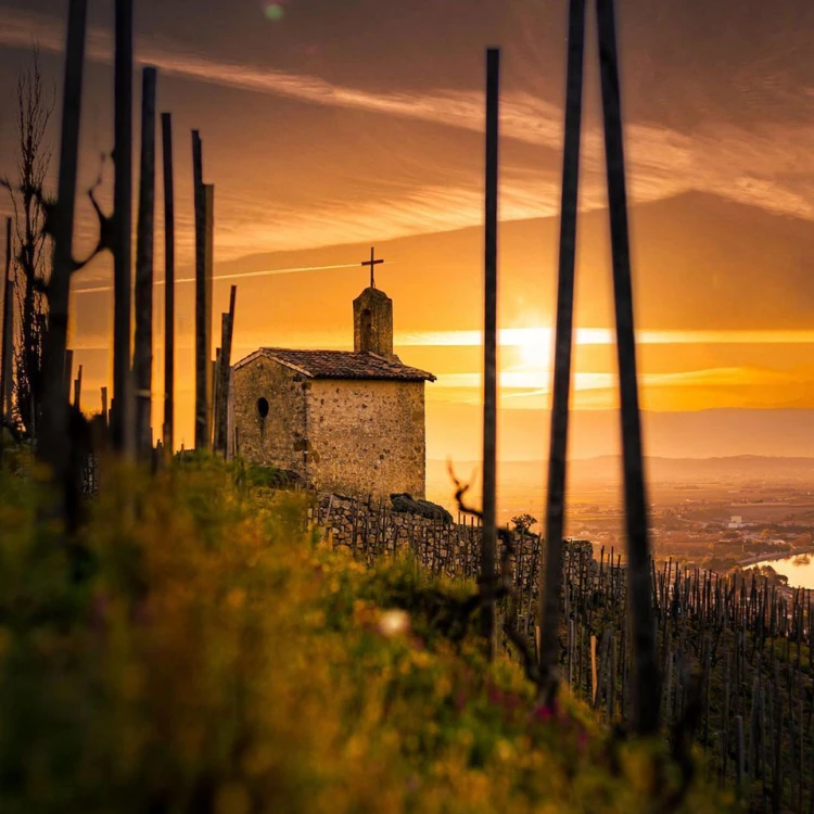Hier oben rund um das Städtchen Tain l‘Hermitage, von wo auch die berühmte Valrona Schokolade kommt, werden auf den besten Terroirs der Nordrhône zahlreiche Rot- und Weißweine produziert, u.a. Crozes Hermitage, St. Joseph und Condrieu. Die Spitze bilden dabei die Weine vom legendären Weinberg Hermitage.