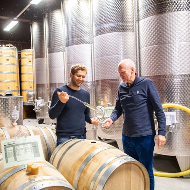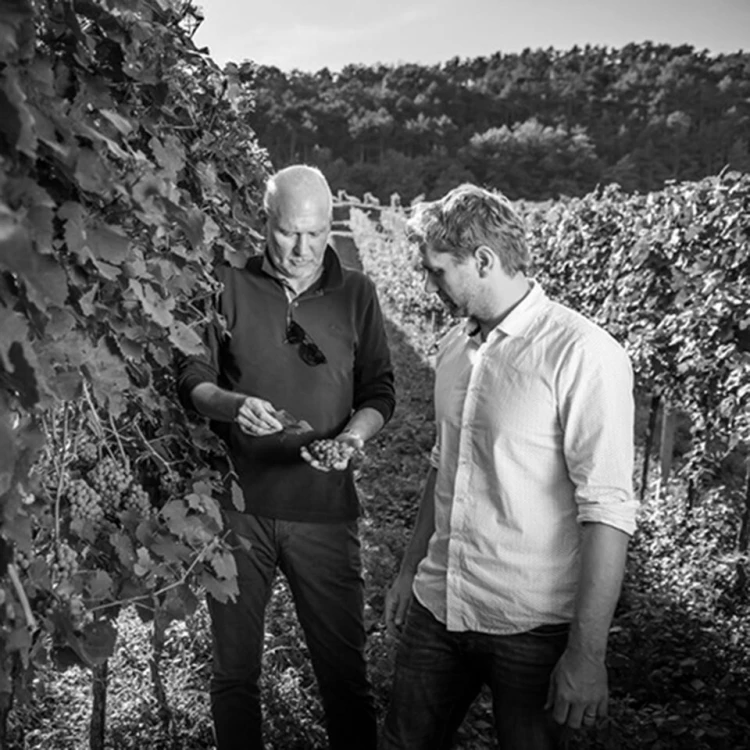 2020 war der erste Jahrgang dieses Weines, den zwei Größen des österreichischen Weinbaus auf den Markt brachten. Markus Huber übernahm im Jahr 2000 mit 21 Jahren den elterlichen Betrieb, stellte ihn auf Bio um und machte ihn zu einem der besten im Traisental. Lenz Moser stammt aus der gleichnamigen österreichischen Winzerdynastie und ist international bestens vernetzt. Er war Geschäftsführer der Robert Mondavi Europe GmbH, geschäftsführender Gesellschafter der TxB International Fine Wines, Gesellschafter der Laurenz Five Fine Wines GmbH und ist seit 2015 Chiefwinemaker des Château Changyu Moser XV im chinesischen Weinbaugebiet Ninxia.