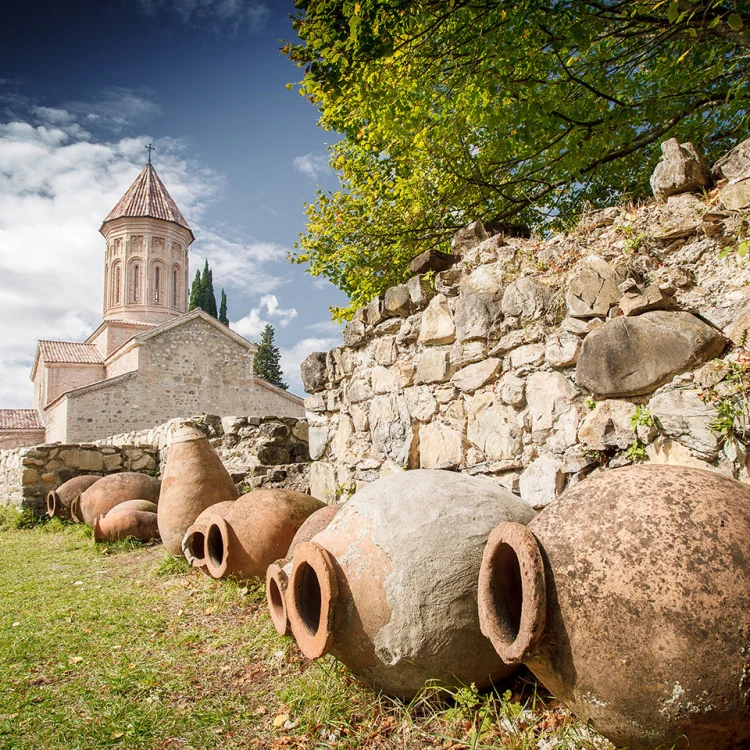 Kisi is one of the oldest indigenous grape varieties in Georgia - and yet it had almost disappeared. It was not until the 1990s that it was rediscovered and systematically recultivated in the Kakheti region. Today, it is regarded as a symbol of the renaissance of Georgian viticulture and combines tradition, originality and modern elegance. Kisi, also known regionally as Dampala, Kisi Maghranuli, Kissi and Maghranuli, is late-ripening, produces small, golden-yellow berries with thick skins and is suitable for both fresh, modern white wines and the typical amber wines fermented in Qvevri. The wine undergoes a long maceration in these large clay amphorae buried in the ground, resulting in intense structure, spicy notes and a distinctive tannic texture. Kisi's aromas include ripe pears, dried apricots and apples, orange blossom and honey, complemented by fine herbal and spicy notes such as peppermint. Matured in stainless steel, it is fragrant, clear and fresh; as a Qvevri wine, it is deeper, fuller-bodied and has a fine tannin structure. Today, it is grown on around 26 hectares.