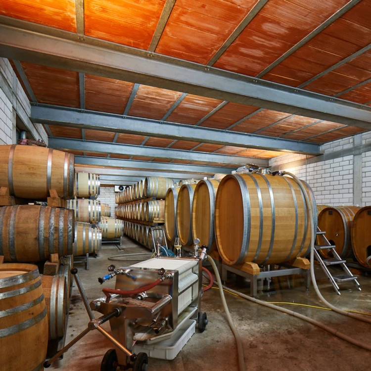 The wines are vinified with contemporary technology and the greatest care in two different directions: The fresh, lively, varietal white wines ferment and mature primarily in steel tanks. The red wines and Chardonnays, on the other hand, get their fine spiciness and aromas from ageing in wooden barrels, partly in small oak barriques. Some of the barriques are specially made from Palatinate oak.